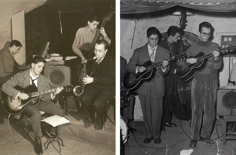 A gauche : Au Tabou à Saint-Germain en 1956 (Copyright Jean-Pierre LELOIR)Le Bobby Jaspar All Stars , le quintette d’Hubert Fol, le Tabou… La Rive gauche. A ce moment de sa vie, Sacha est directeur des Editions DMF : la journée, il travaille. Dur. Mais dès les premiers réverbères allumés, direction Saint Germain, le swing et le Be bop. Les nuits se succèdent de bœufs en bœufs, chaque musicien américain de passage à Paris sait qu’auprès de Sacha, il trouvera toujours à jouer… 1956. Sacha est élu meilleur guitariste français par les lecteurs du magazine Jazz hot. Titre qu’il conservera 7 années de suite.